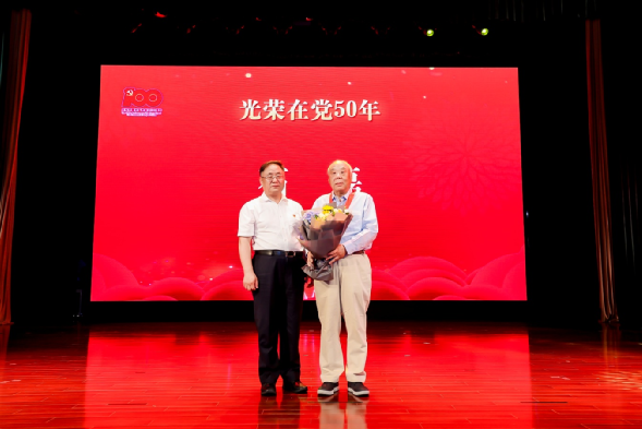 大會隆重舉行了“光榮在黨50年”紀念章頒發(fā)儀式,集團黨委書記、董事長卜玉龍為集團老領(lǐng)導、老黨員石磊頒發(fā)并佩戴紀念章,向他致以崇高的敬意,感謝他為中智集團作出的積極貢獻。