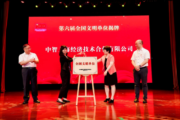 大會隆重舉行了全國文明單位—中智上海經(jīng)濟技術(shù)合作有限公司揭牌儀式,在集團黨委書記、董事長卜玉龍和上海市文明辦副主任唐洪濤共同見證下,中智上海公司黨委書記、副總經(jīng)理李雙和上海市徐匯區(qū)委宣傳部副部長、文明辦主任楊海英共同揭牌。