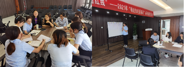 活動(dòng)主要內(nèi)容為組織全員集中觀看警示教育視頻和分組討論。在分組討論中,將大家分為黨員組、團(tuán)員組和群眾組,各組在組長(zhǎng)的帶領(lǐng)下進(jìn)行暢所欲言的研討,得出十條“紅線”內(nèi)容。
